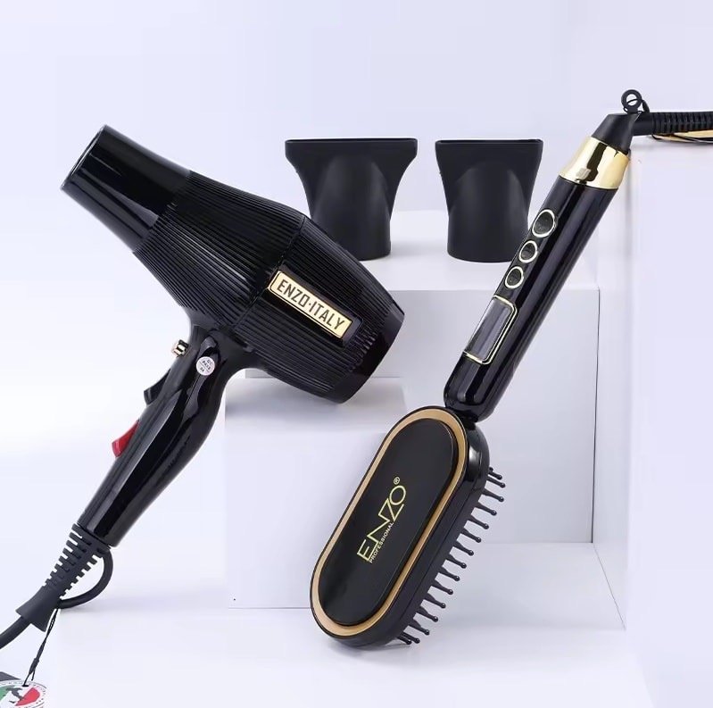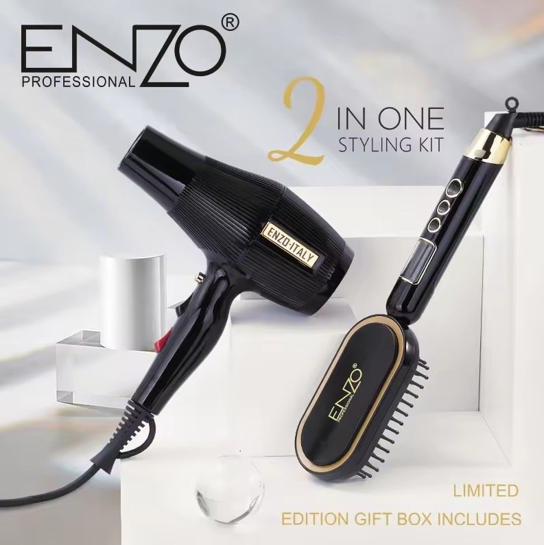 بكج 2 بـ 1 سشوار + فرشاة حرارية من ENZO بقوة 2000 واط حلا متكاملاً لتجفيف وتصفيف الشعر في جهاز واحد. يتميز هذا الجهاز بقدرته على تمليس وتجعيد الشعر بفضل تصميمه المتطور وقوته العالية، مما يجعله مثاليًا للاستخدام في المنزل، الفنادق السفر، وحتى في الصالونات الاحترافية.