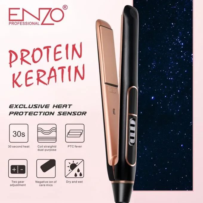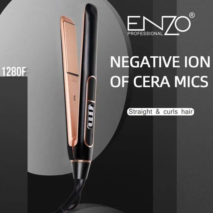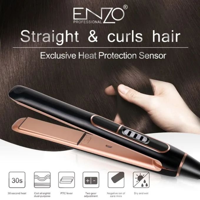 احصلي على شعر أملس وناعم مع ENZO Professional Hair Straightener & Curler (EN-3328)، الجهاز المثالي لتصفيف الشعر بطريقة آمنة وفعالة.