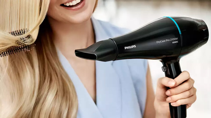 يمنحك مجفف الشعر الاحترافي بقدرة 2100 واط تدفق هواء قويًا. ومن شأن هذا المزيج بين القوة والسرعة أن يجعل تجربة تجفيف الشعر وتسريحه أسرع وأسهل.