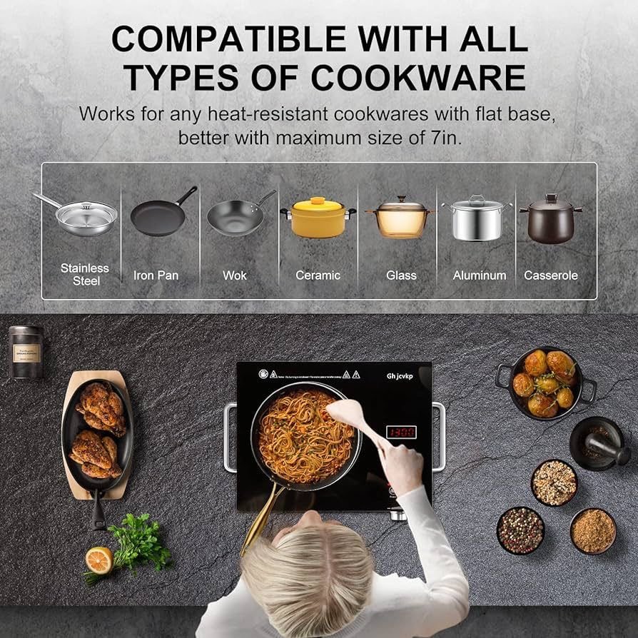 التوافق مع الأواني: على عكس طباخات الحث (Induction)، يعمل هذا النوع مع جميع أنواع الأواني (ستانلس ستيل، ألمنيوم، سيراميك، زجاج، وجرانيت).