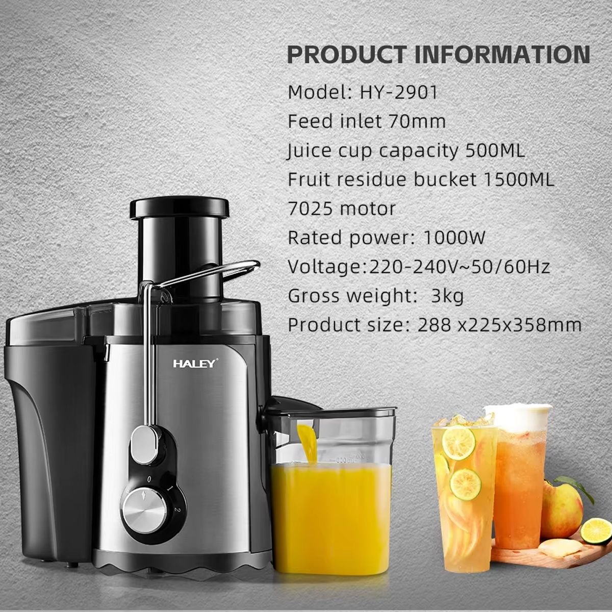 عصّارة الفواكه والخضار الكهربائية Haley موديل HY-2936