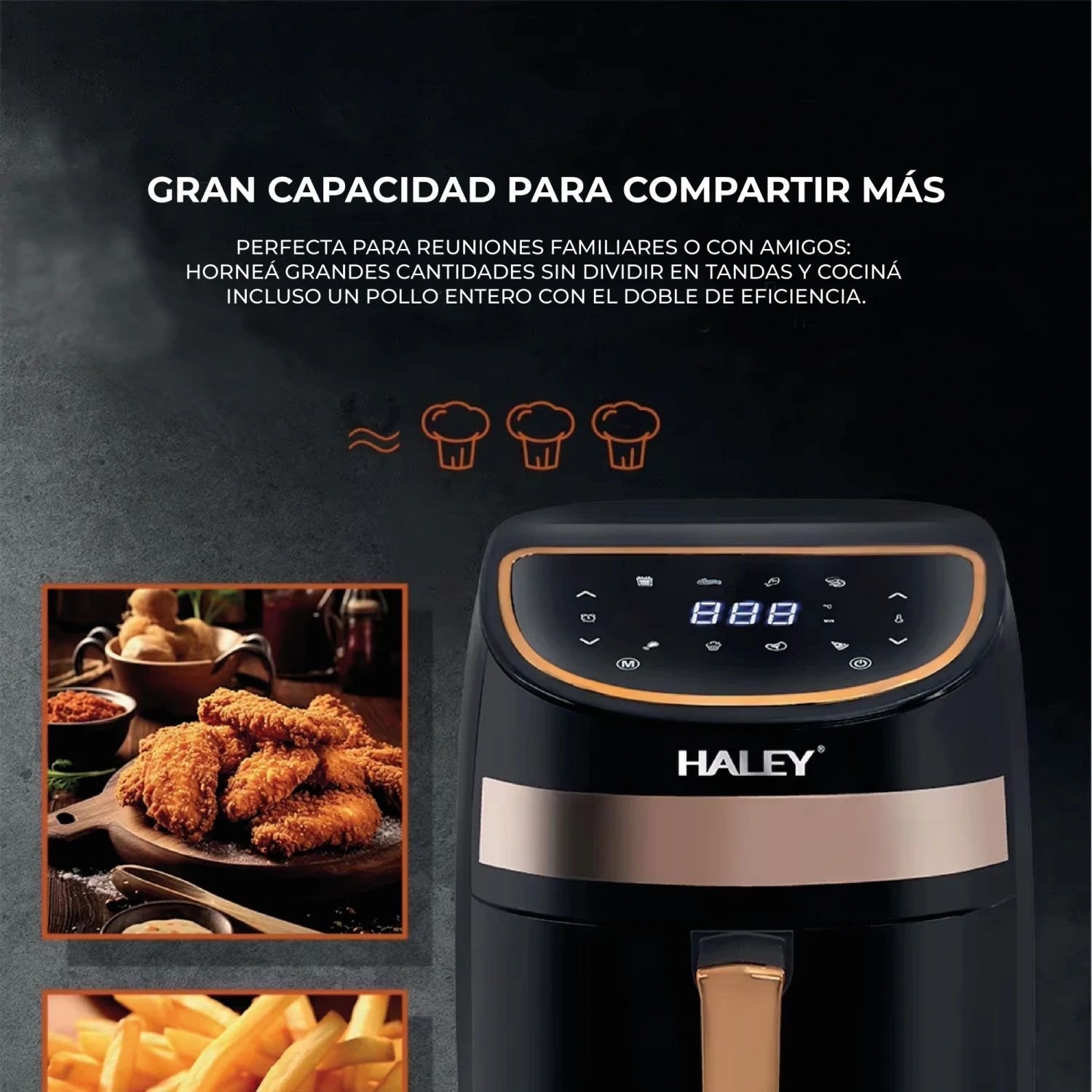 استمتع بطعام مقرمش ولذيذ مع القلاية الهوائية من Haley التي تمنحك طهي صحي بدون زيت أو بكمية قليلة جداً!