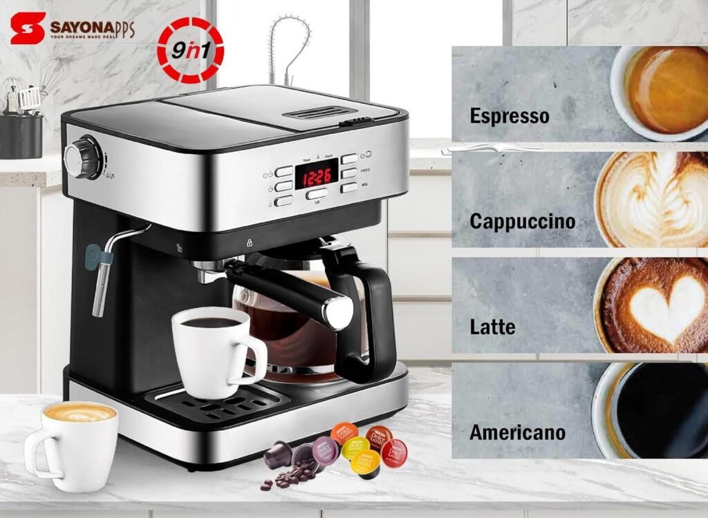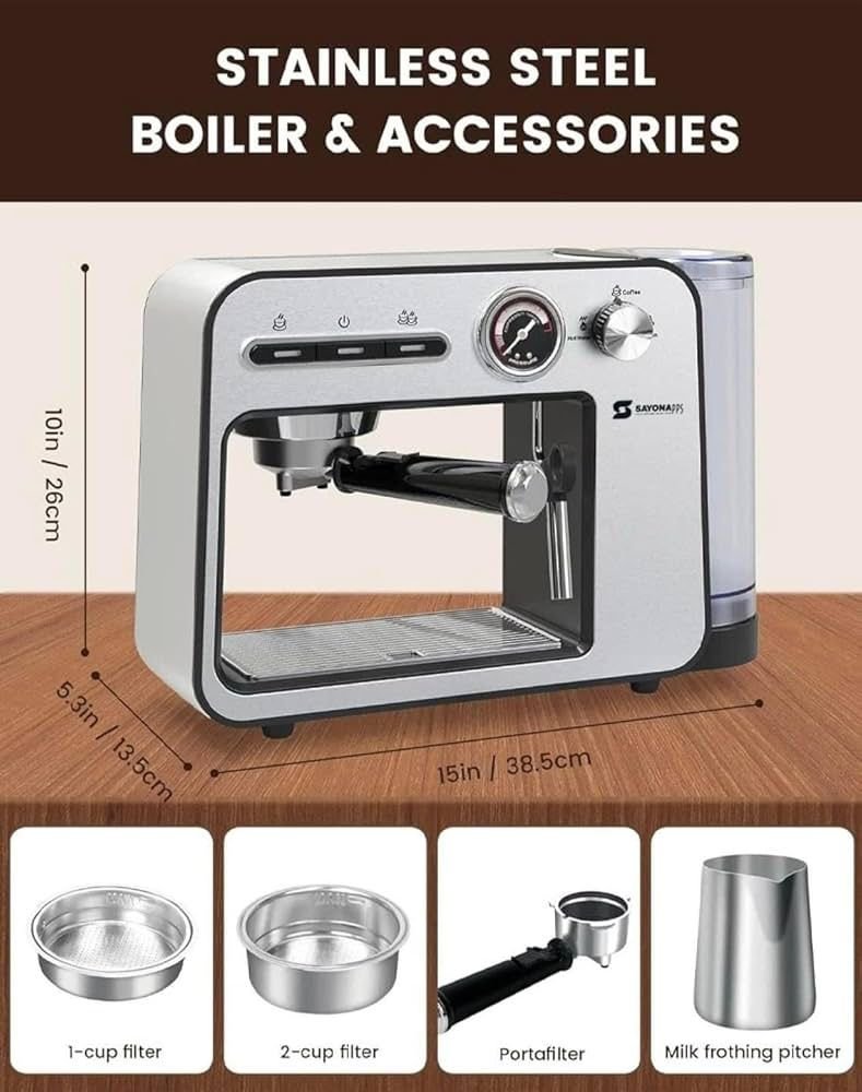 صفقة اليوم هي ماكينة تحضير القهوة برغوة الحليب ضغط 20 بار بقوة 1450 واط من Sayona