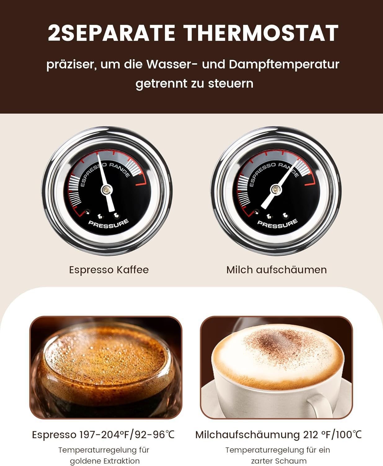 ضغط 20 بار وقوة 1450 واط لتحضير الاسبريسو