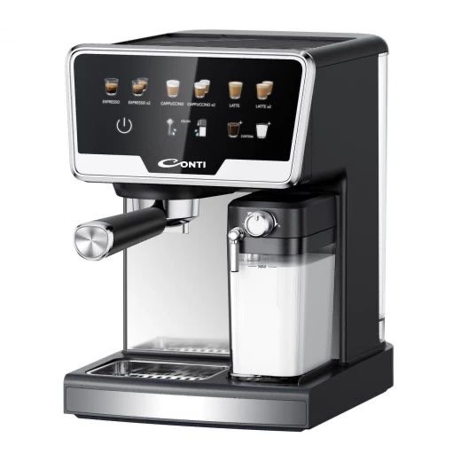 استمتع بقهوة كالمقاهي مع ماكينة الإسبريسو كونتي CM 3037 BS المزودة بشاشة لمس ملونة لسهولة الاستخدام، وخزان ماء قابل للإزالة بسعة 1700 مل لإعادة التعبئة بسرعة. تعمل بقوة تصل إلى 1530 واط مع ضغط 15 بار لتحضير إسبريسو غني وكريمي، كما تأتي مع حاوية حليب بسعة 500 مل لتحضير الكابتشينو واللاتيه ورغوة الحليب بسهولة، لتمنحك تجربة قهوة احترافية في منزلك كل يوم.