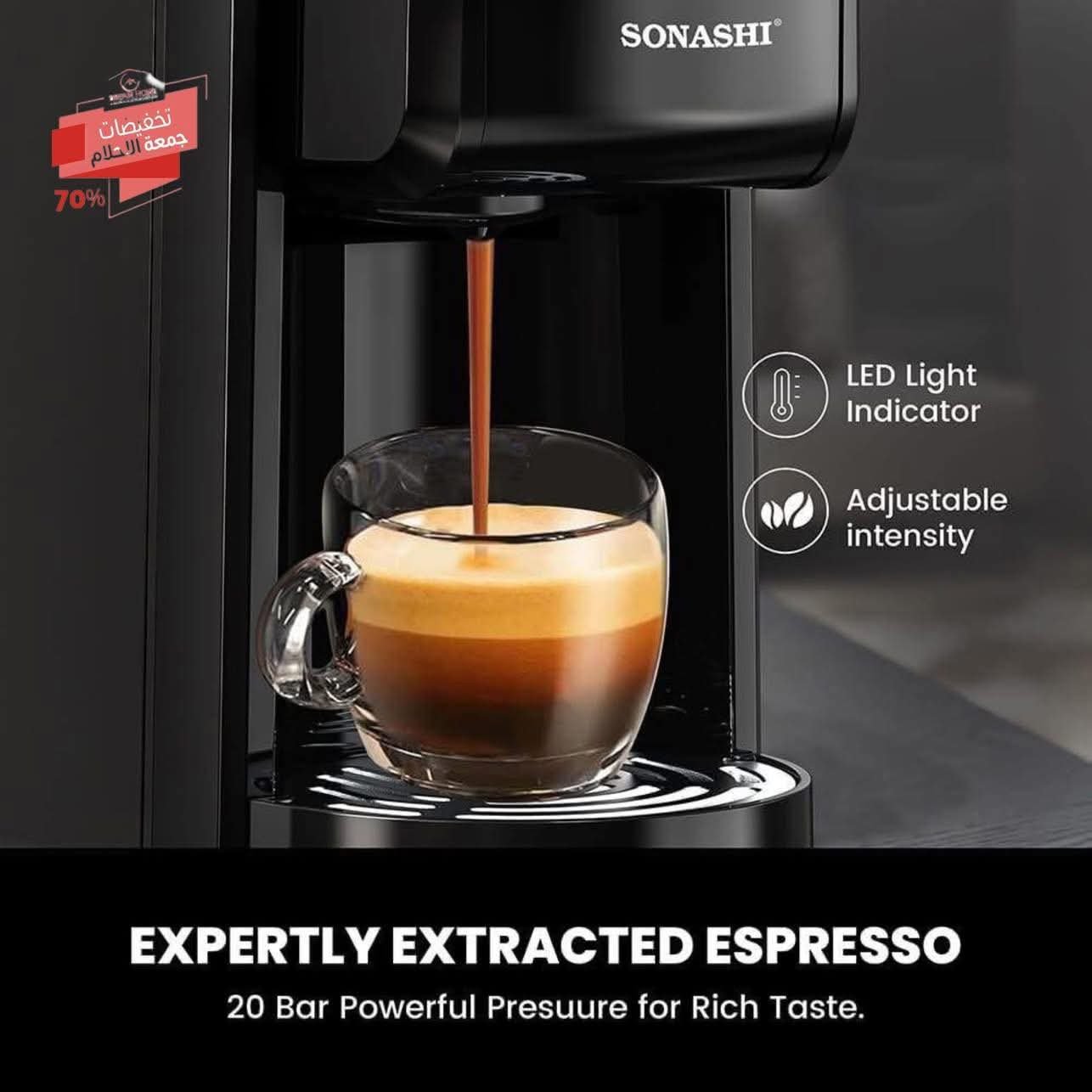 ضغط 20 بار لاستخلاص النكهة الغنية من الكبسولات.
