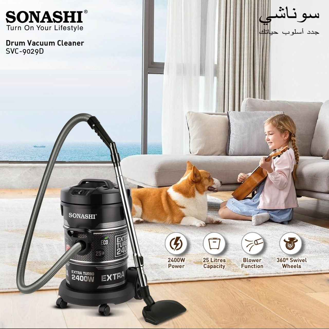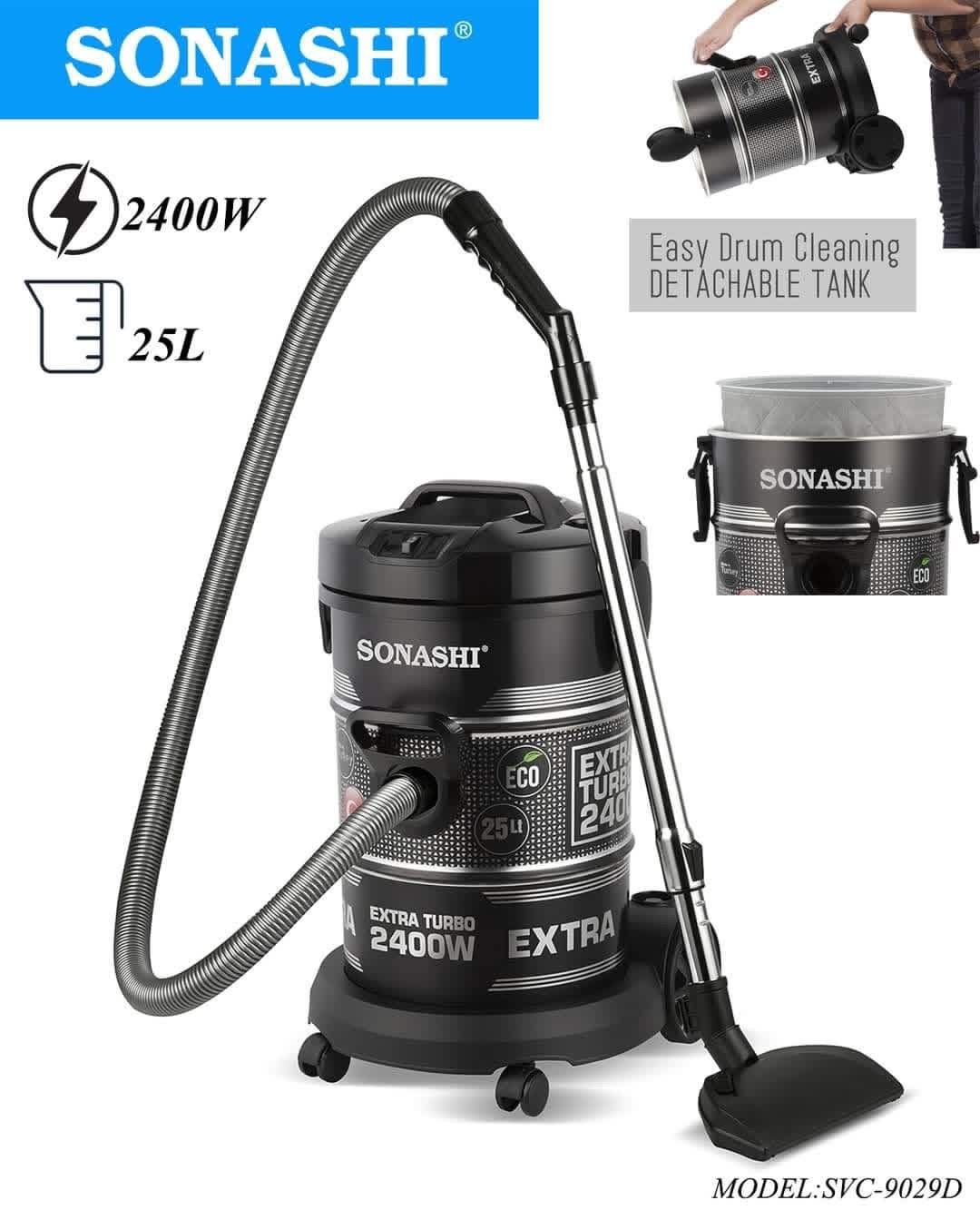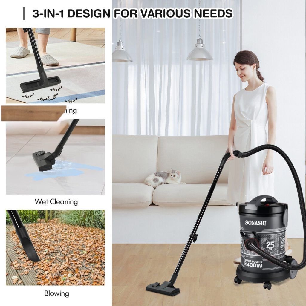 مزودة بمحرك قوي 2400 واط يمنحك قوة شفط عالية للتنظيف العميق، مع خزان بسعة 25لتر مناسب للاستخدام اليومي في البيت.