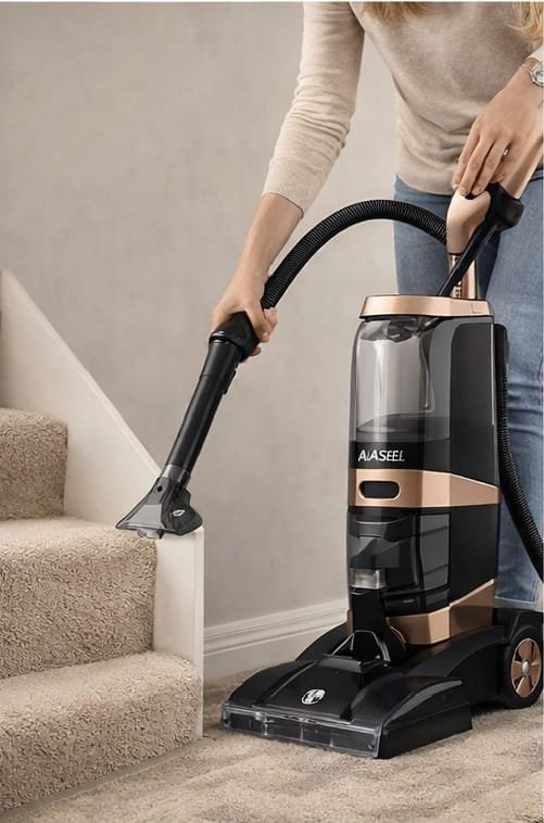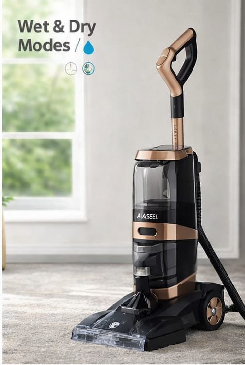 مكنسة كهربائية عمودية من ماركة “الأصيل” (Alaseel) مصممة لتنظيف السجاد والأرضيات.